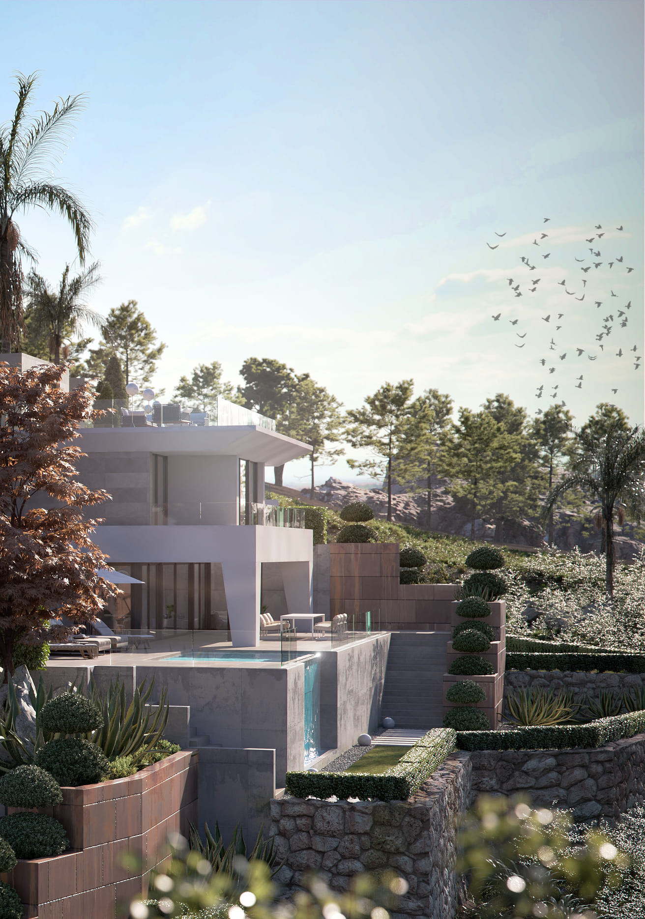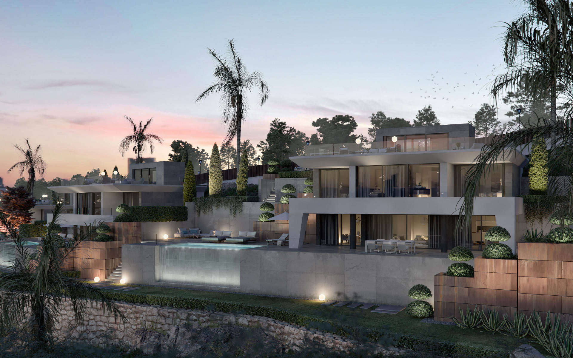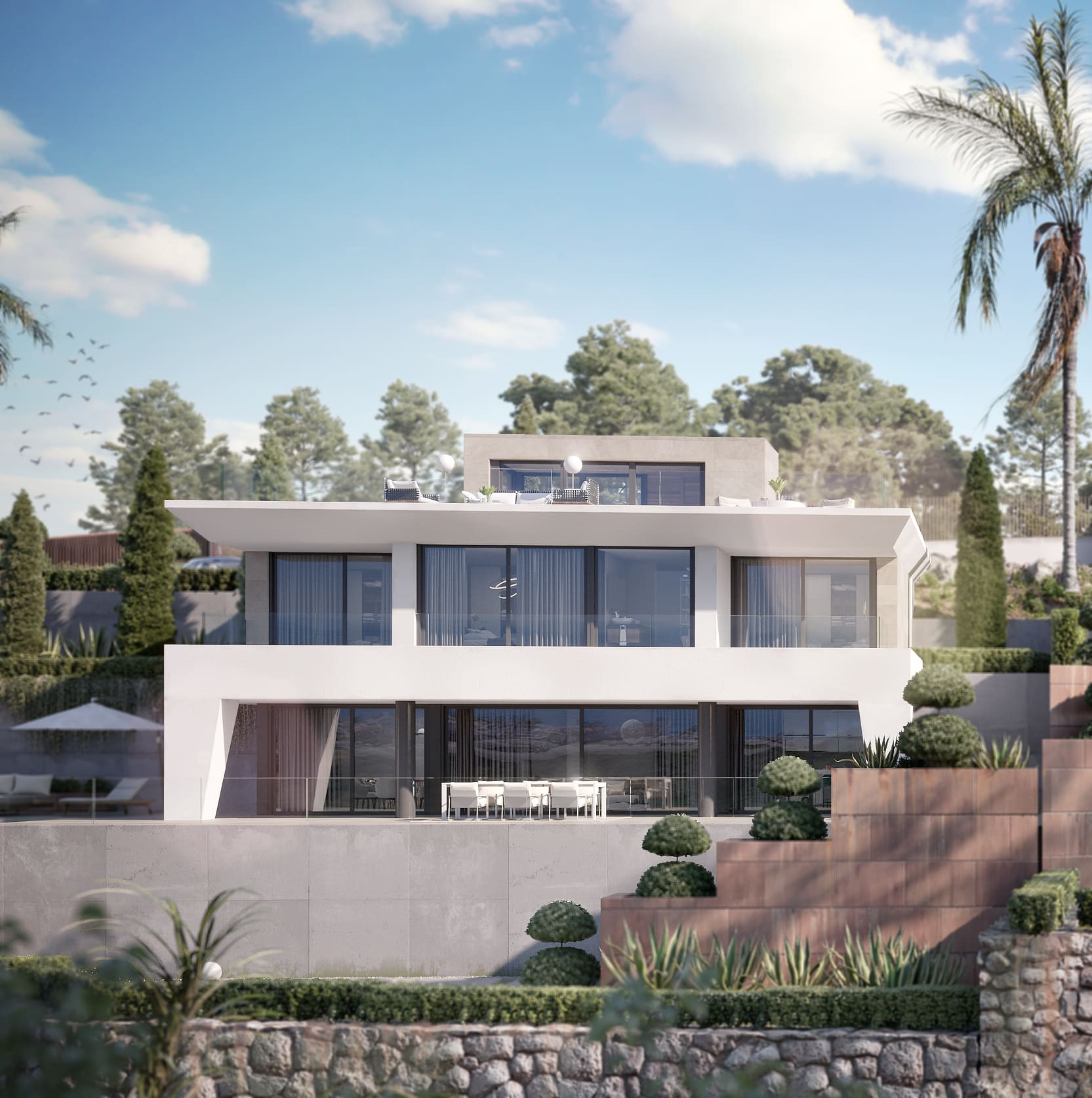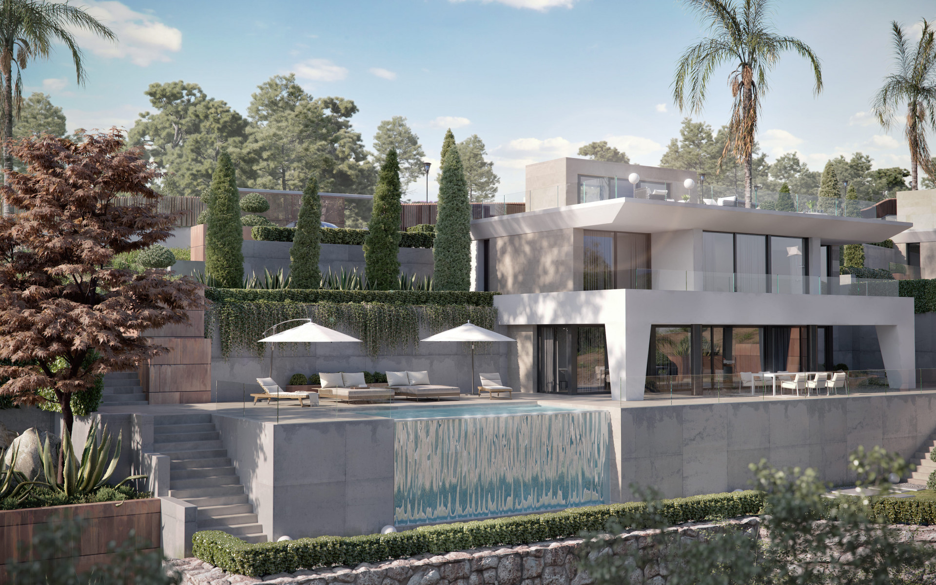 The outdoor spaces that make up the design of this exclusive villa with an infinity pool, are carefully thought out, so that at all times, you can breathe in the fresh air, feel the serenity and be hypnotised by the sea. Inside the villa, you will also be able to feel the balance and architectural harmony that will fill your home with positive energy.